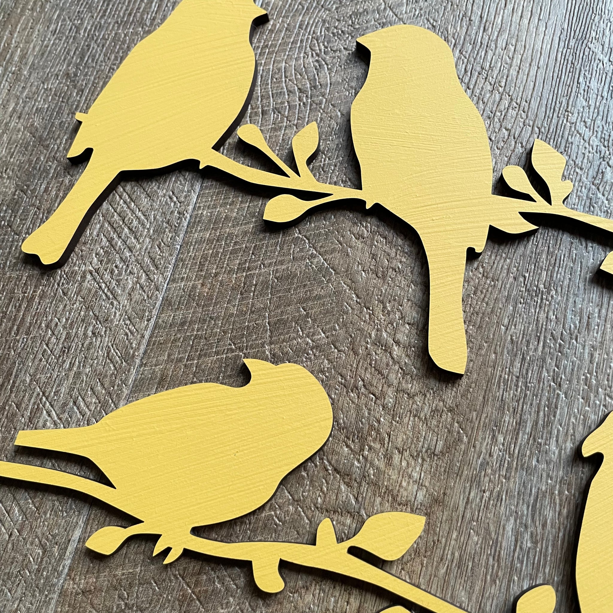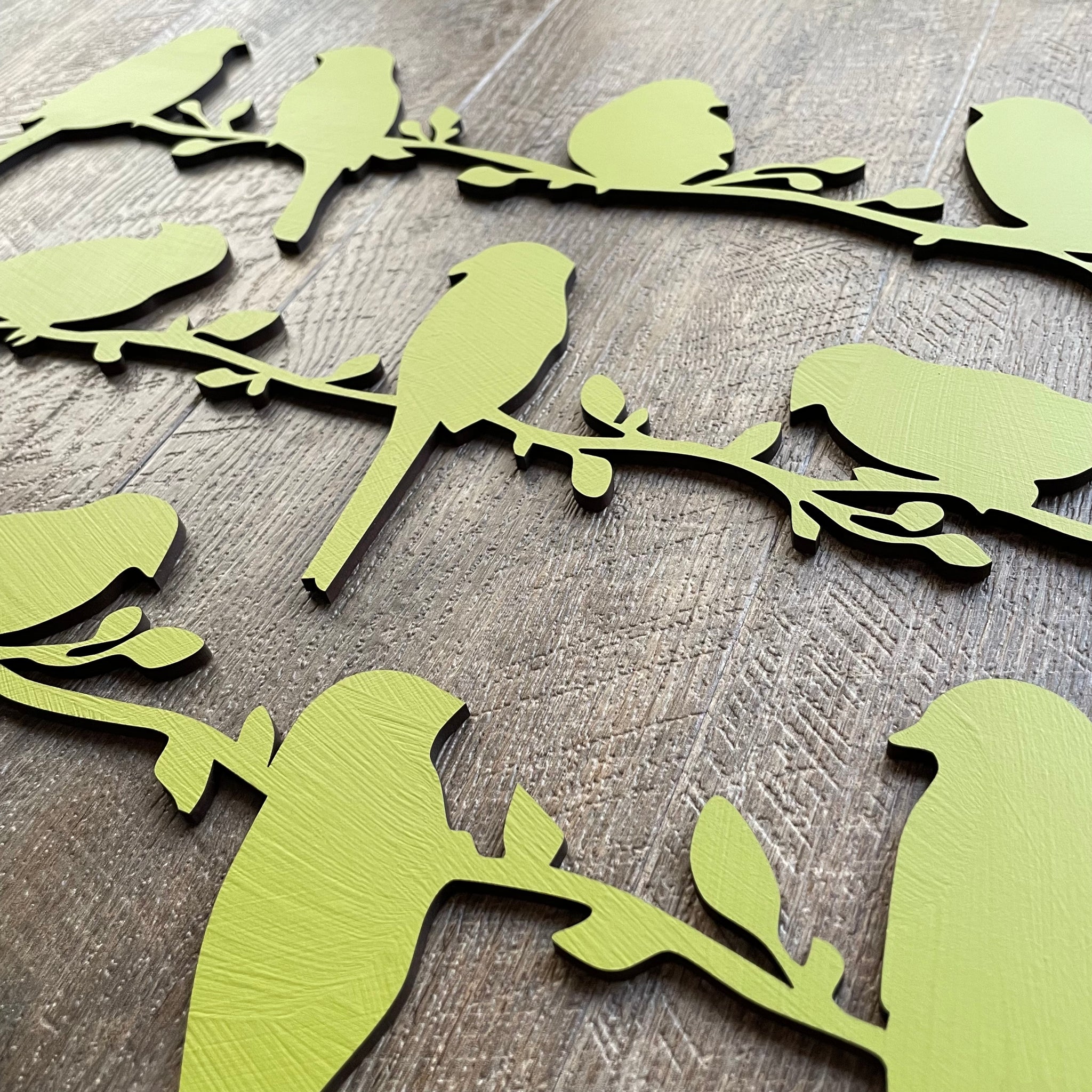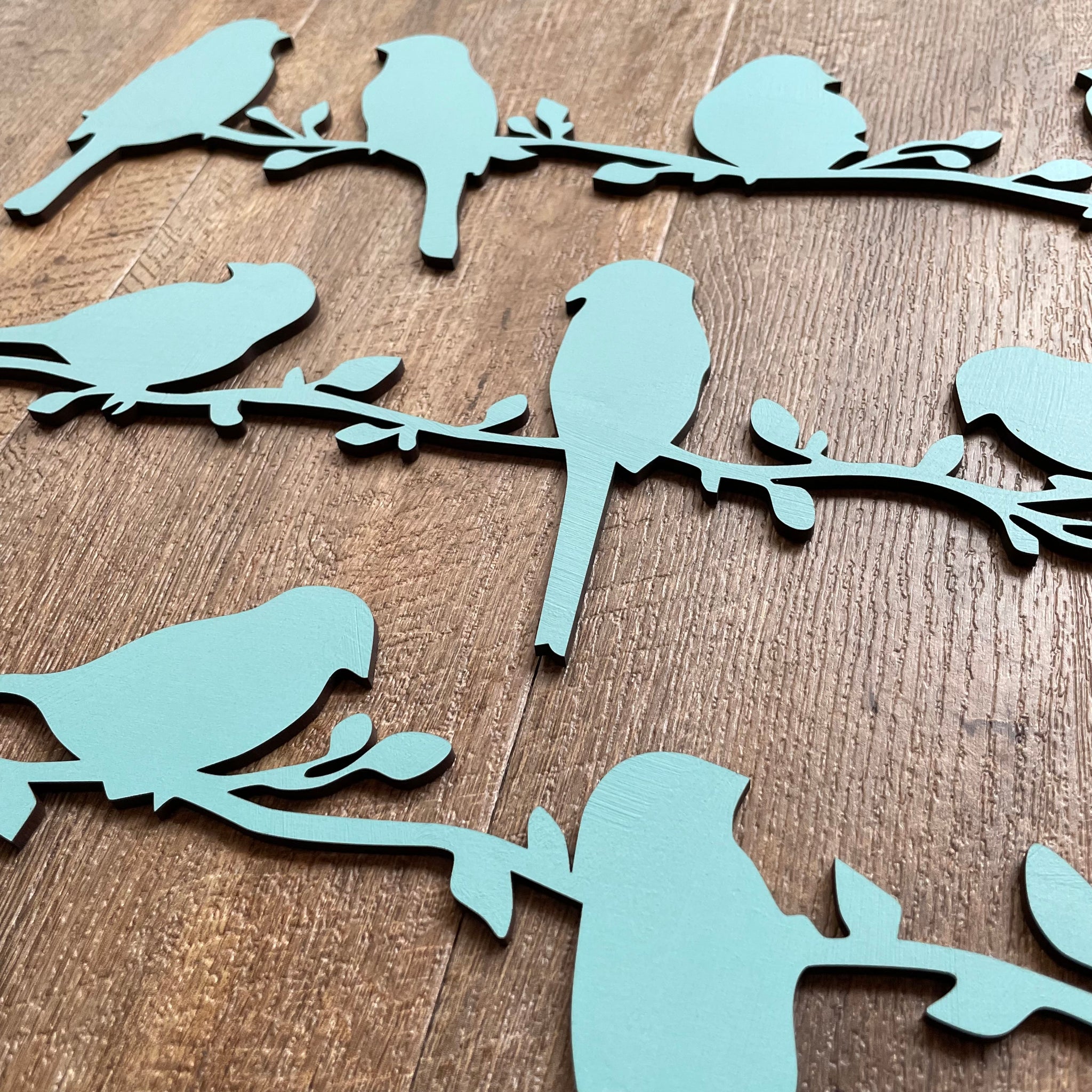 Our  Birds on a Branch set is laser cut from 4 mm MDF.  It consists of 4 separate pieces all  painted with luxurious Annie Sloan Chalk paint, creating a beautifully textured piece of art to decorate any space in your home. It is beautifully presented in attractive packaging...making it a very versatile gift.