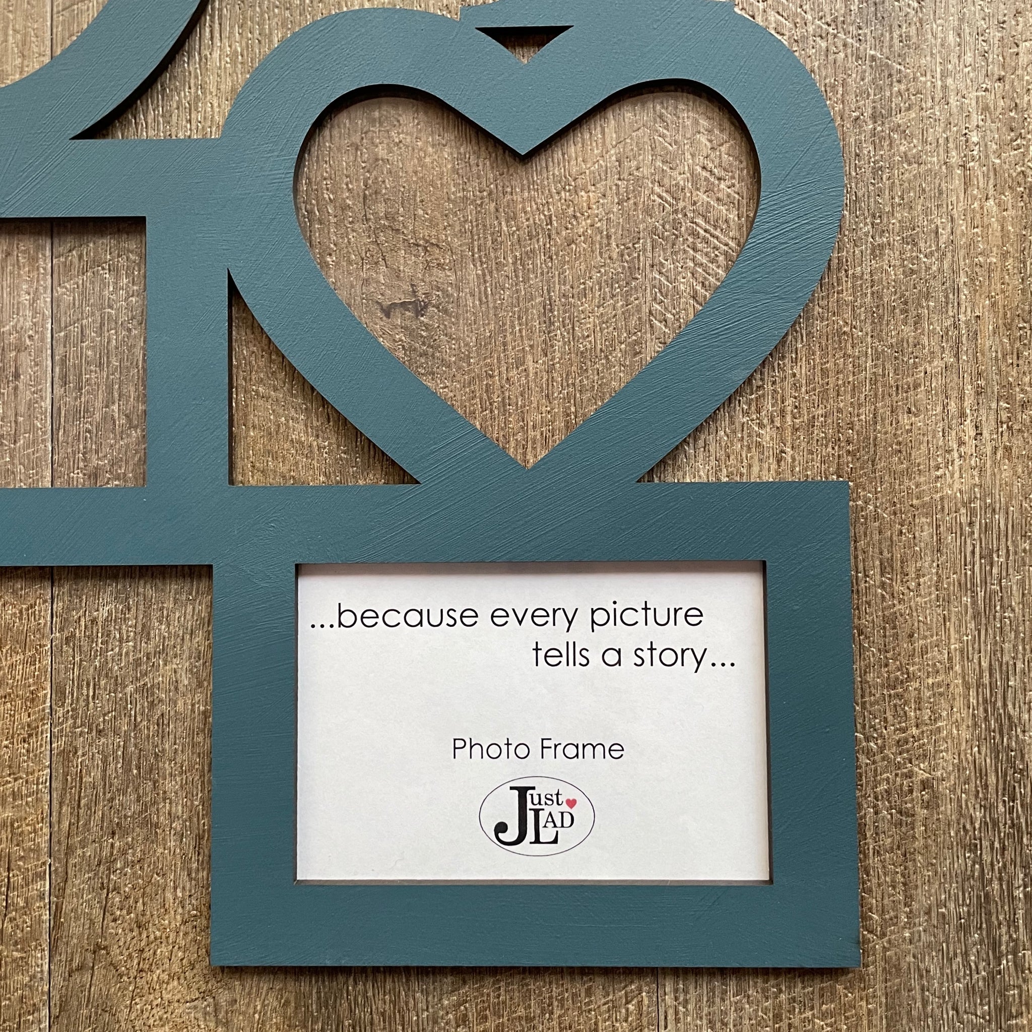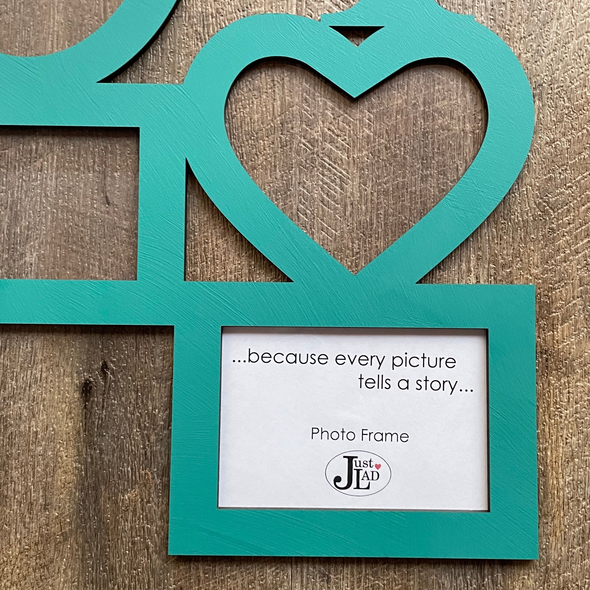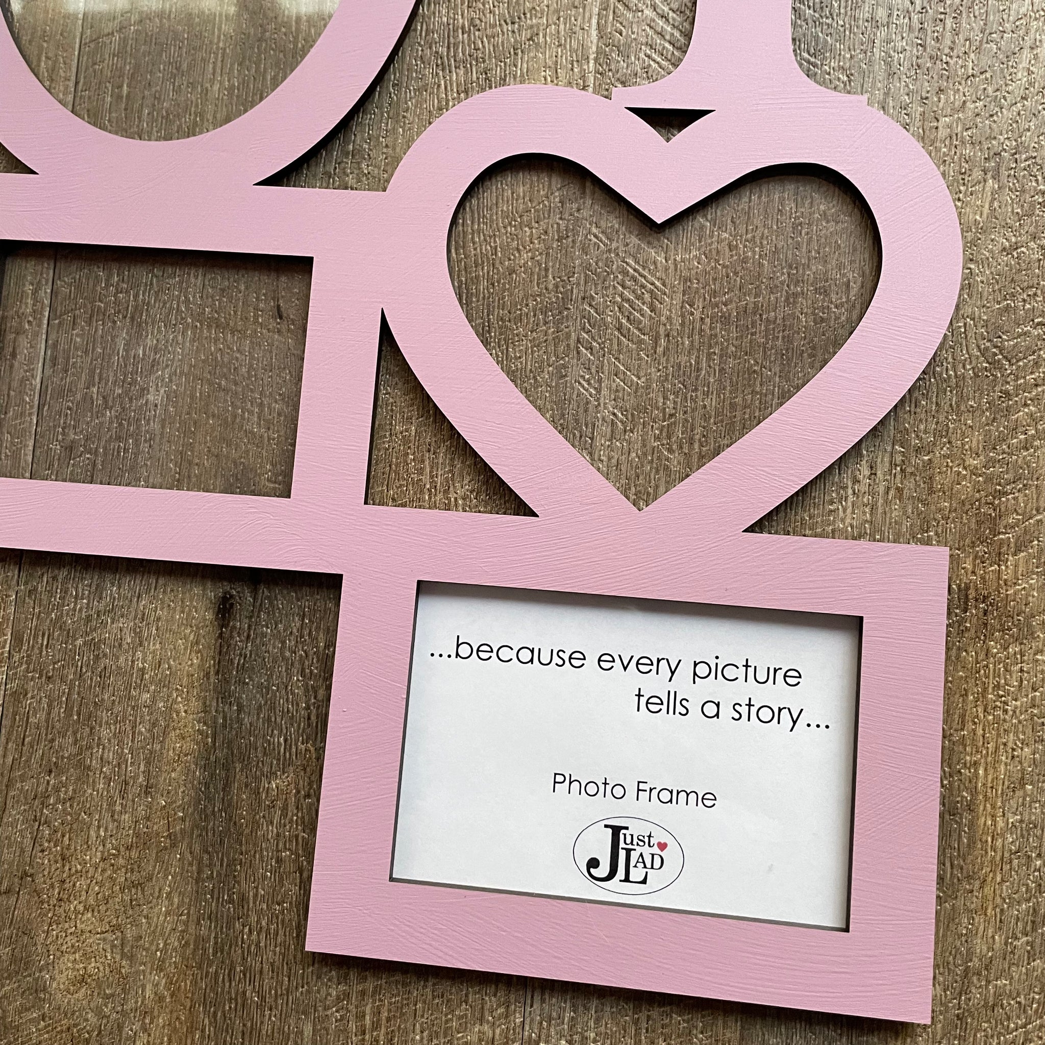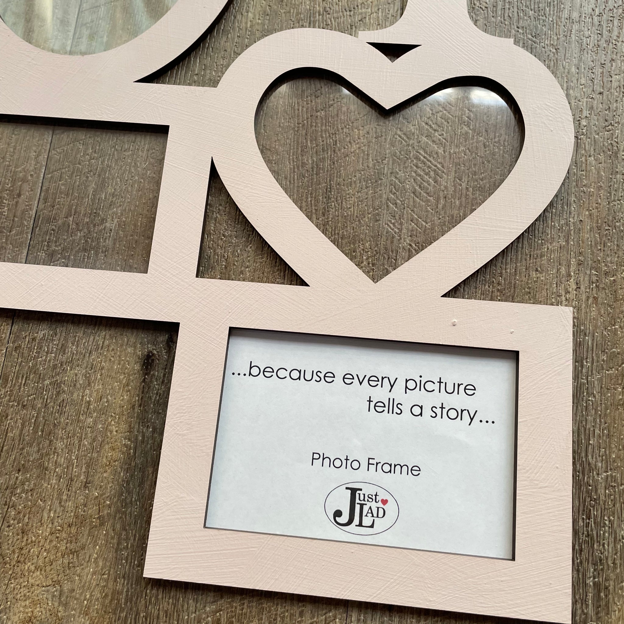 • Our Family Photo Frame measures 470mm x 500mm and can take 6 photos as the heart also has a PET widow.
