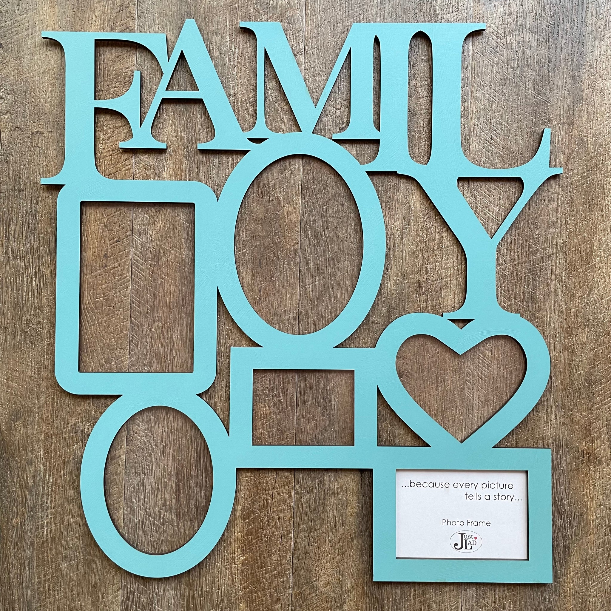 Our Family Photo frame is a whimsical addition to any living room, entry hall or photo wall. It is cut from 4mm MDF and painted with luxurious Annie Sloan chalk paint in a variety of beautiful colours.  With PET windows protecting the photo, the frame is ready to be used. Cut a copy of your favourite photo and use the photo corners supplied or simply stick it on with sellotape.  Presented in attractive packaging making it the perfect gift.
