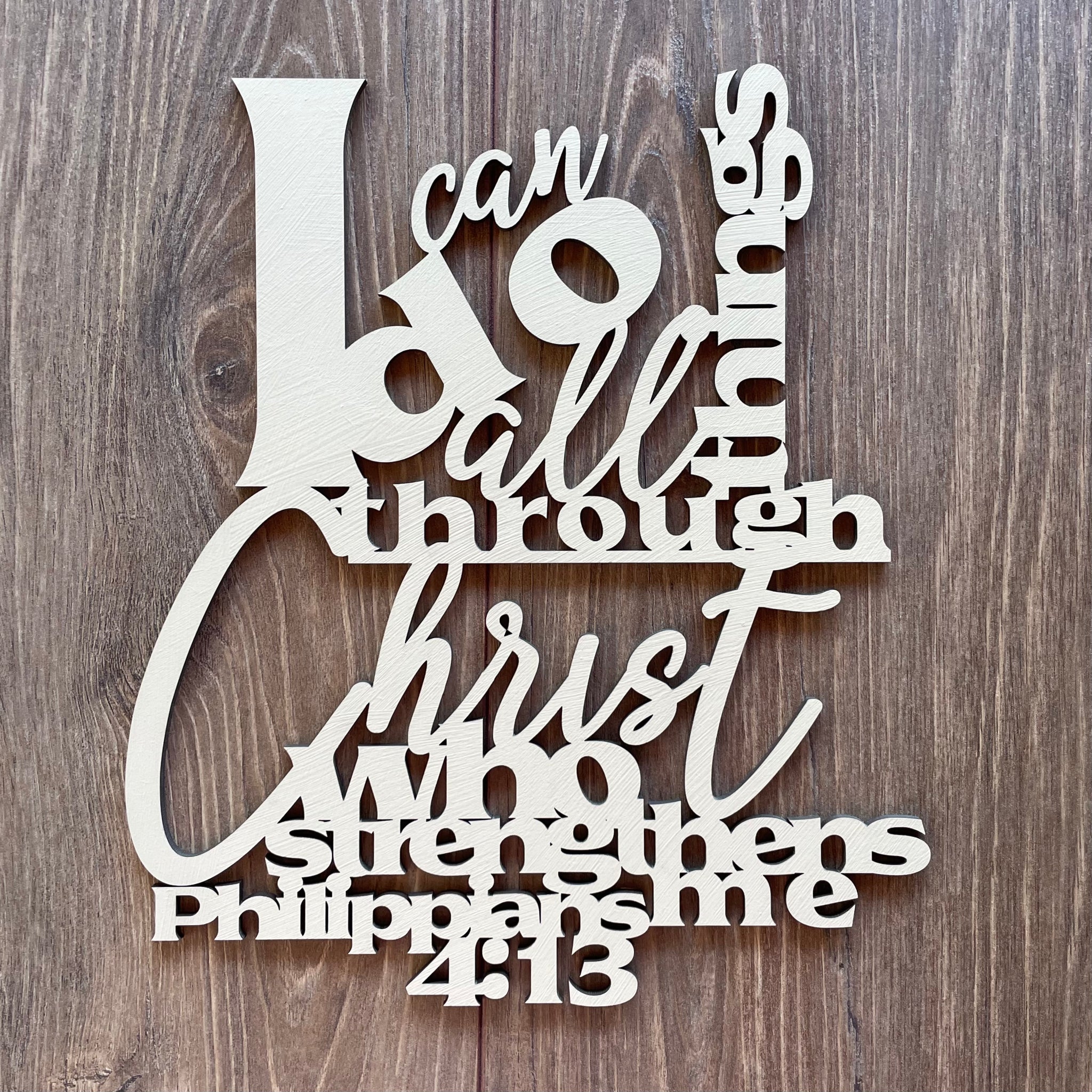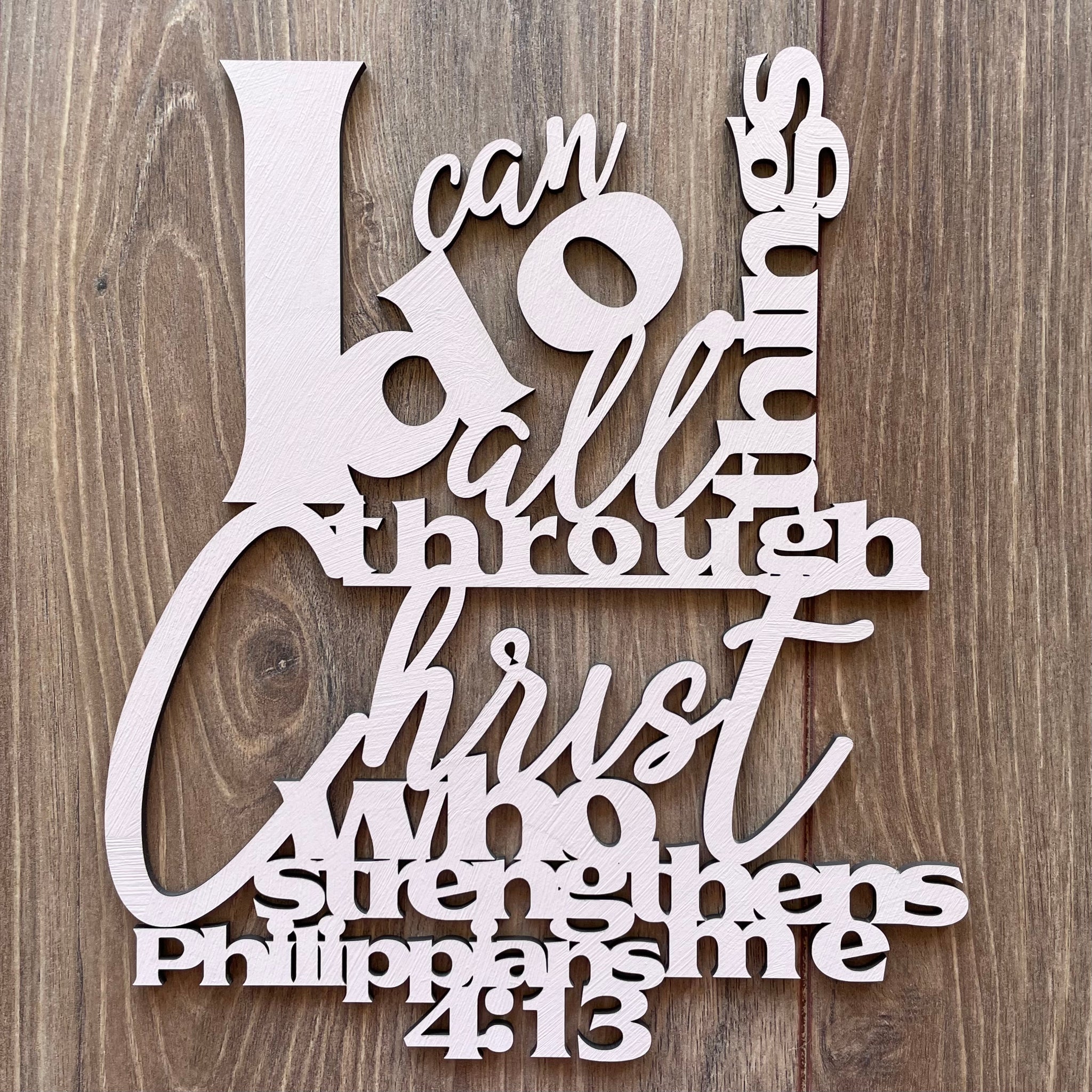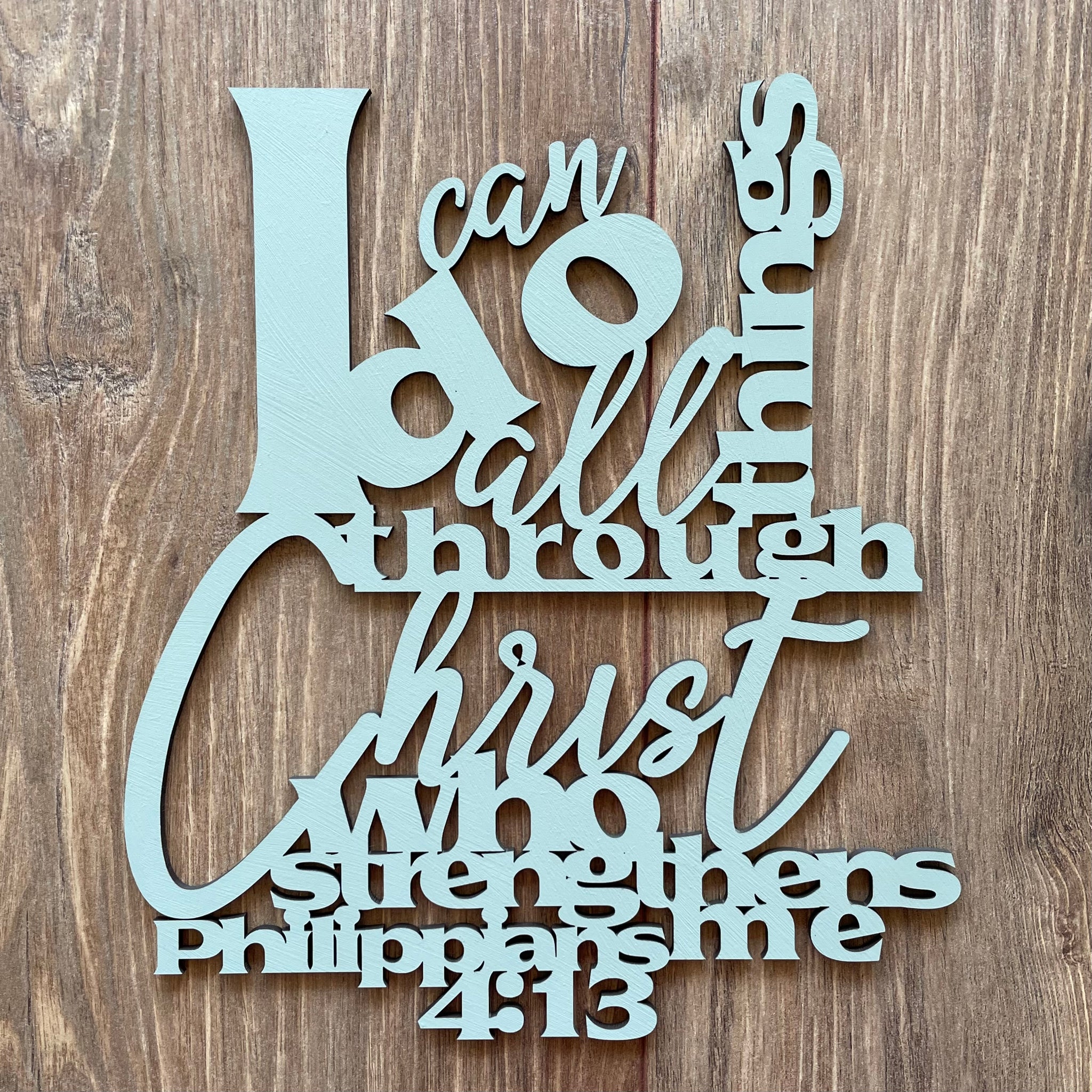 The words of Philippians 4:13 is intricately cut in the finest detail. Cut from 4mm MDF and painted with luxurious Annie Sloan Chalk paint creating a beautifully textured piece of art ready for display.